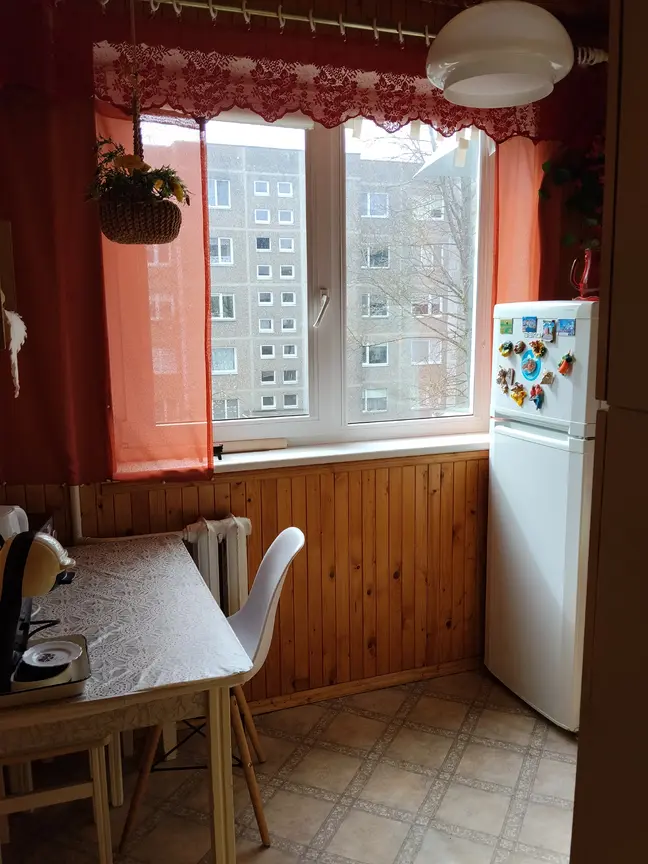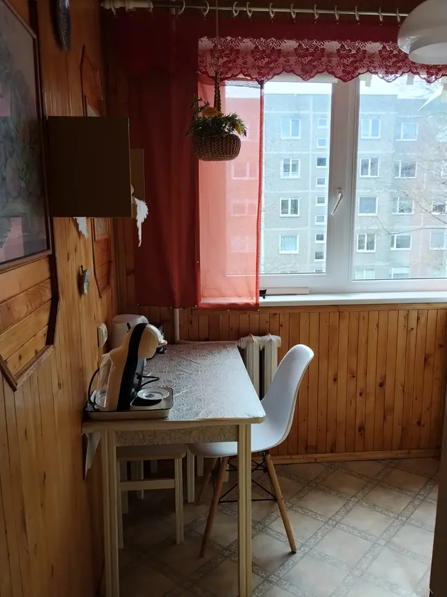 Bendrijai mokama apie 20 E., butas šiltas, žiemą šildymas apie 100 E. vanduo, elektra ir dujos - kiek sunaudosite. Mėnesio nuoma 300 E. Depozitas 600 E.