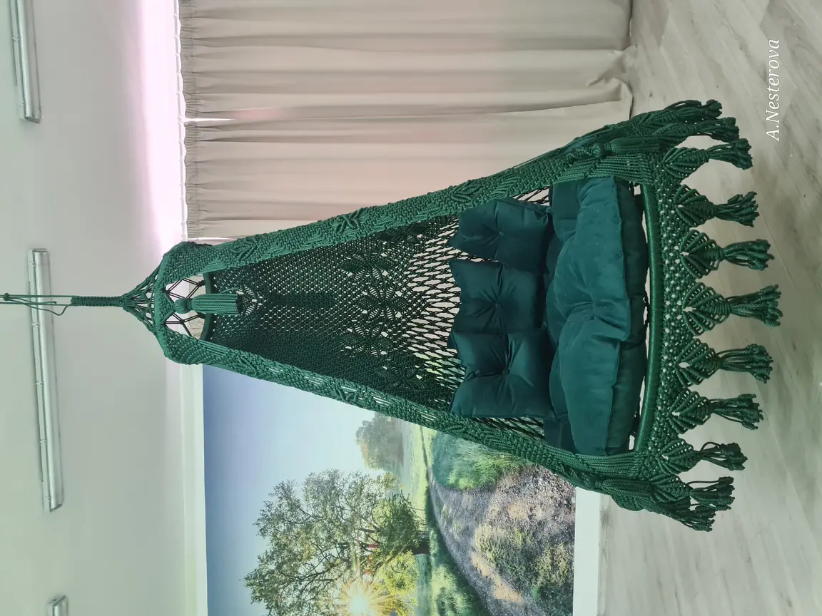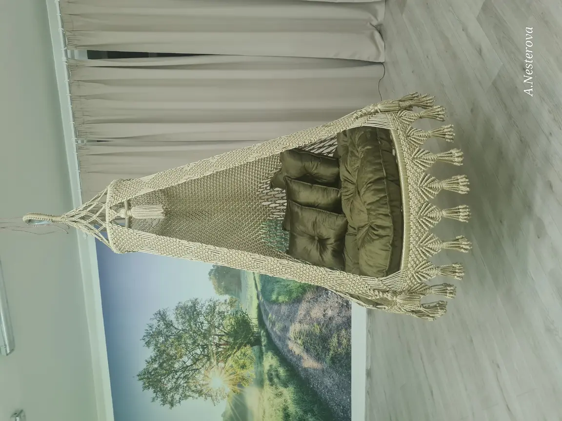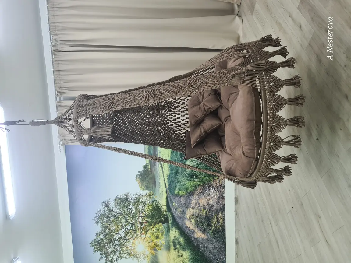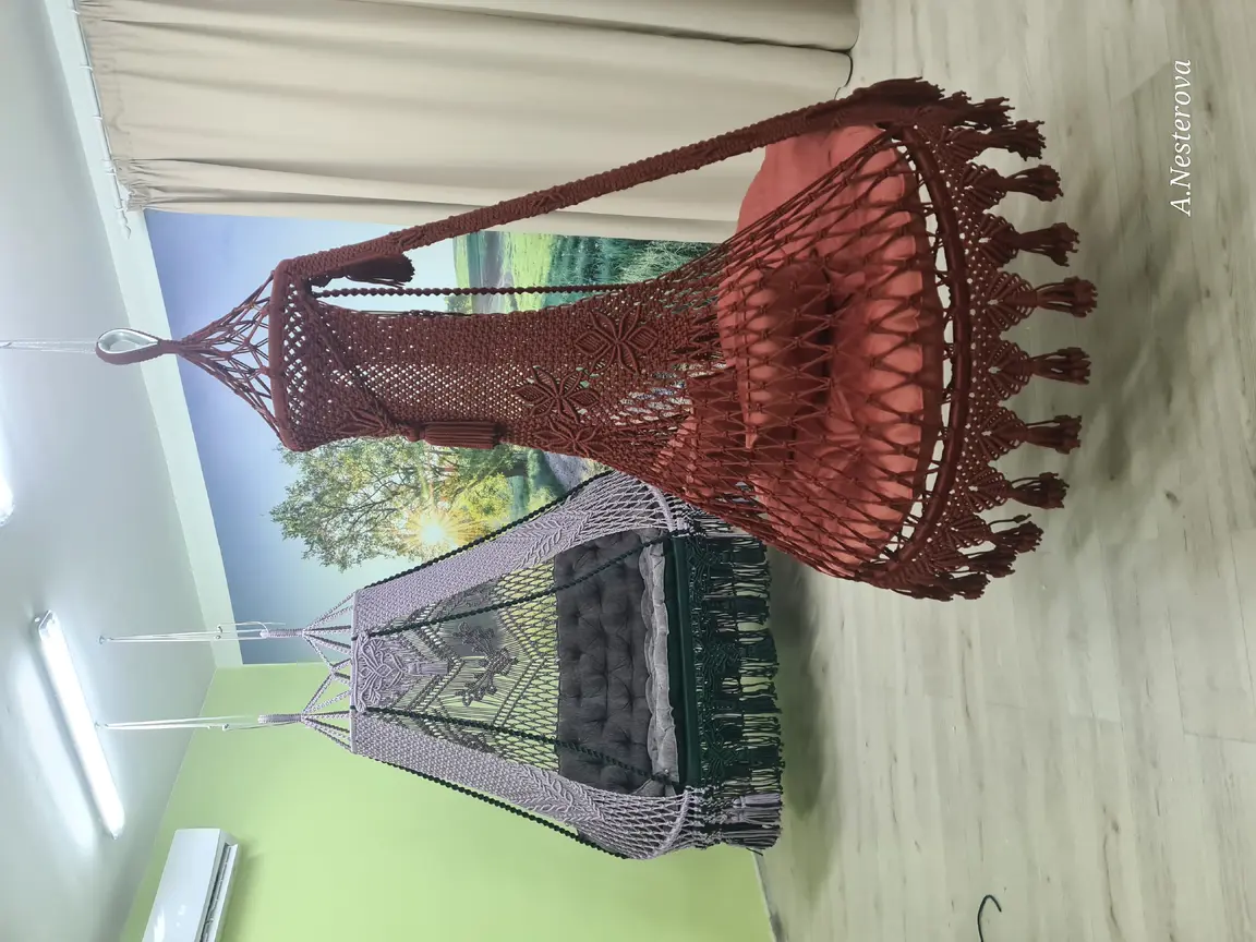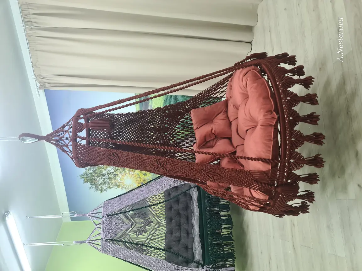 Gaminu rankų darbo pakabinamus krėslus hamakus pintus makrame technika.