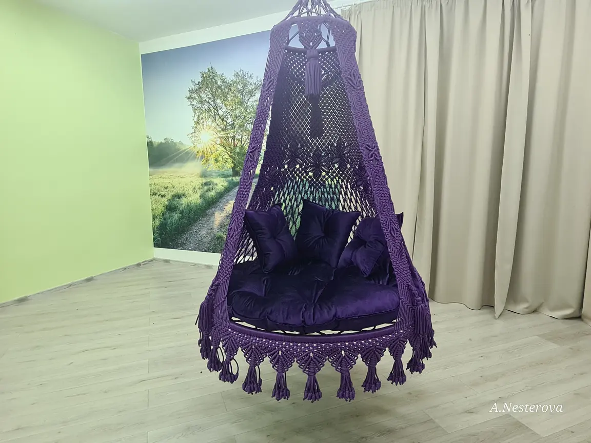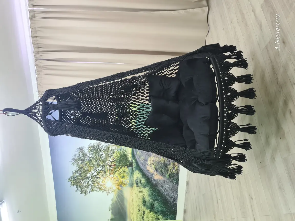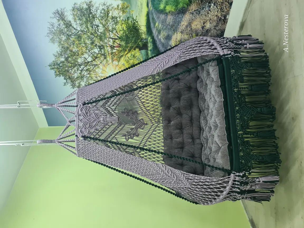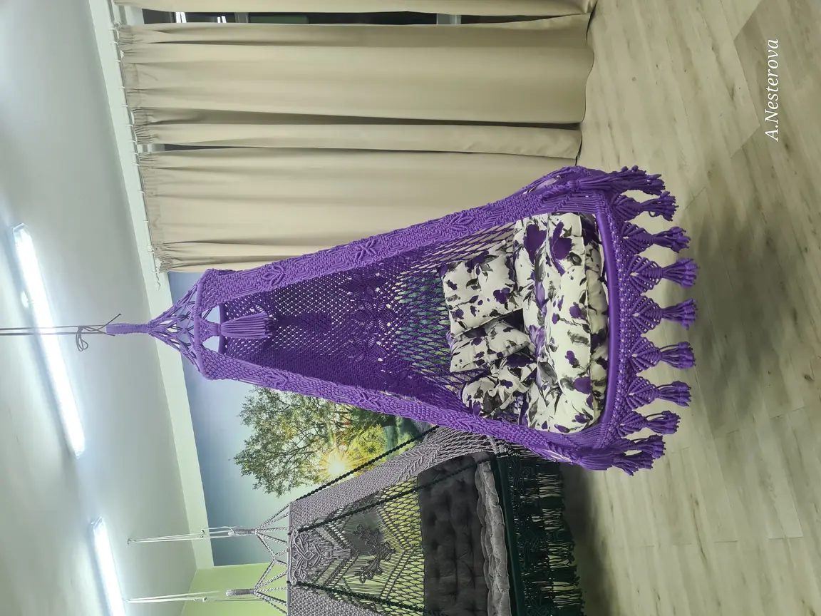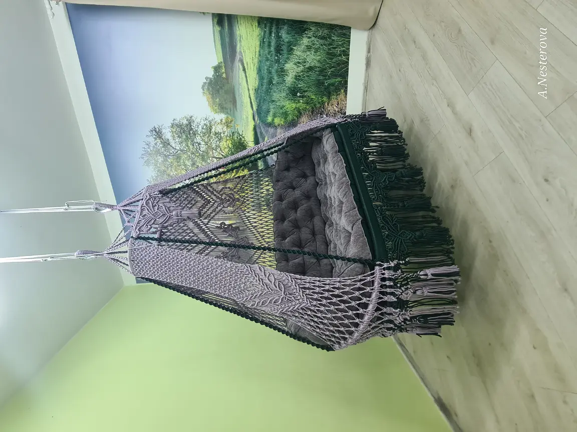 Gaminu rankų darbo pakabinamus krėslus hamakus pintus makrame technika.