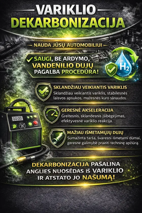 AutoDecarb - tai mobilus variklių dekarbonizavimas ir salono, bei kondicionavimo sistemos ozonavimas. Dirbame Kaune ir Kaišiadoryse, atvykstame į namus, darbą, ar kitą jūsų pasirinktą vietą, kur yra elektros lizdas. Atvykimas įskaičiuotas į kainą. Atlikus variklio dekarbonizaciją pas mus, ir nepraėjus techninės apžiūros dėl taršos, taikome pinigų grąžinimo garantiją.
