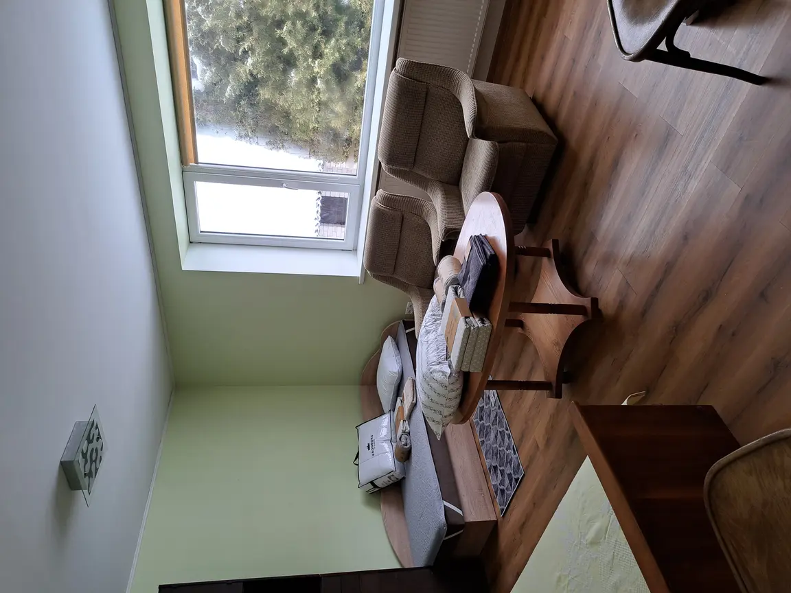 virtuve ir WC kambariu. Yra balkonas, wifi. Kaina З0€ para už kambarį, t.y. kambaryje gali gyventi du žmonės ir mokėti ро 15€ už parą.
