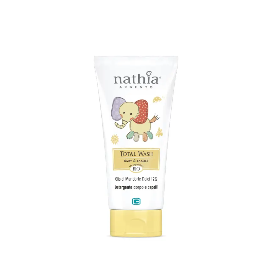 Nathia Total Wash - puiki kasdienė odos priežiūros priemonė vaikams ir visai šeimai. Formulėje naudojami augaliniai ingredientai, švelniai puoselėjantys odą. Sukurtas su augaliniais aktyviais ingredientais, kurie tausoja odą. Didelis augalinių ekstraktų, ypač saldžiųjų migdolų aliejaus, kiekis po kiekvieno prausimosi suteikia odai minkštumo ir švelnumo. Zefyras, avižos ir hamamelis padeda drėkinti ir raminti visų tipų odą. Saldus talko kvapas paverčia dušą tikru malonumu. Visa Nathia Baby linija sukurta kūdikiams ir vaikams nuo pat gimimo.