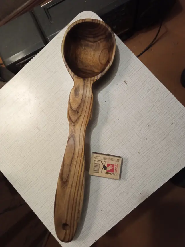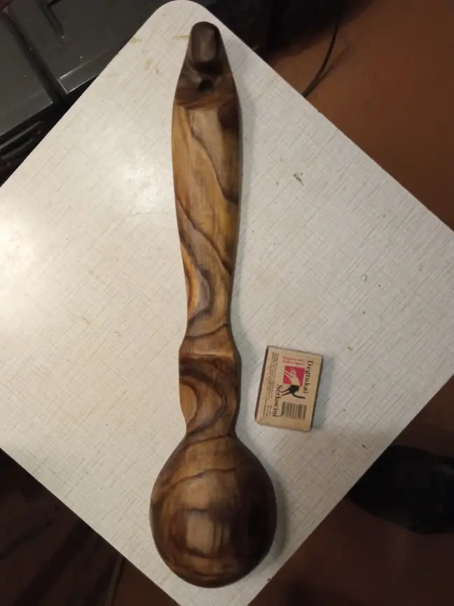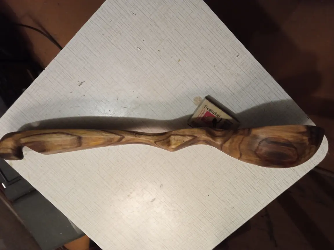37 cm. ilgio, iš labai dekoratyvios žagrenio medienos pagamintas vienetinis, rankomis drožtas patogus paimti samtukas.
